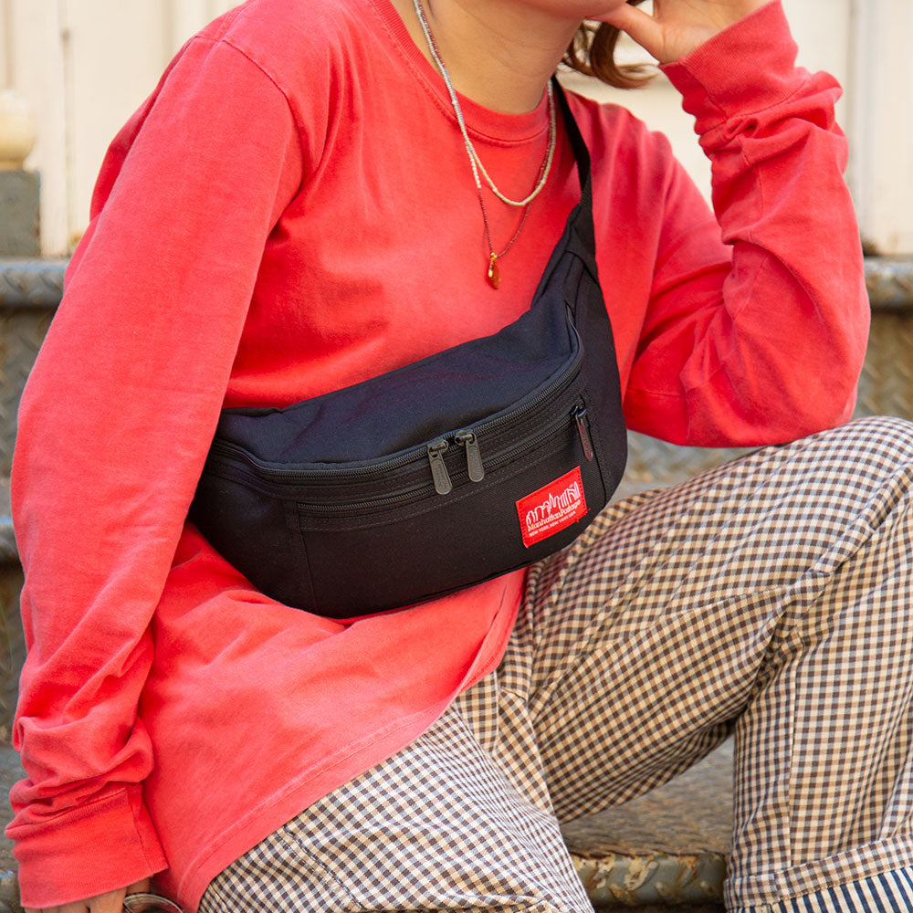 - Adjustable nylon strap with buckle closure comfortably secures the bag to any waist (or across any chest)